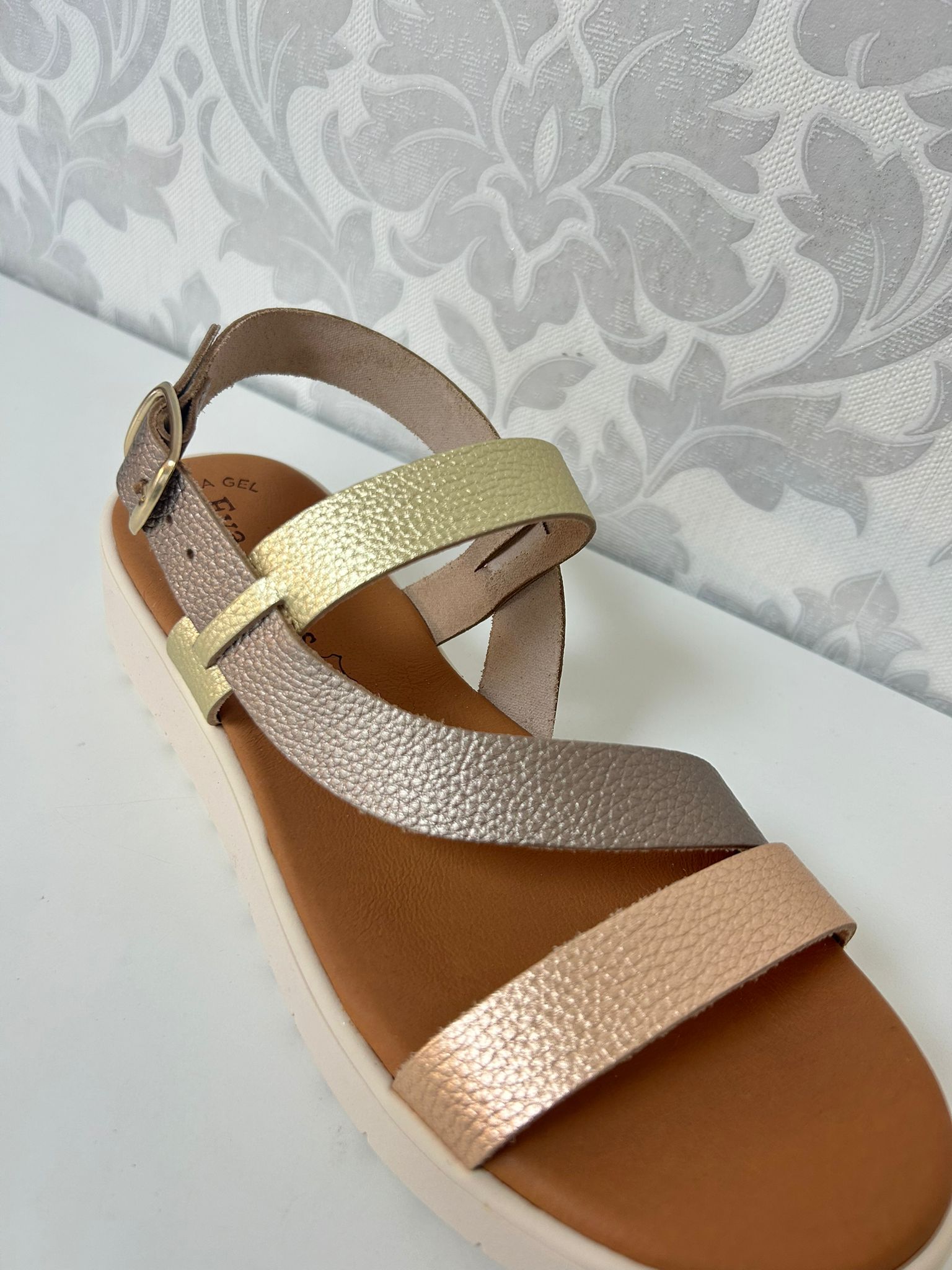 Sandalia Eva Frutos fabricada en piel de alta calidad y elaborada en España. Presenta un diseño cómodo y elegante con varias tiras que aportan sujeción y estilo. Su planta de gel proporciona una pisada más confortable durante todo el día. Super elegantes y bonitas, para que vayas cómoda sin renunciar al estilo.