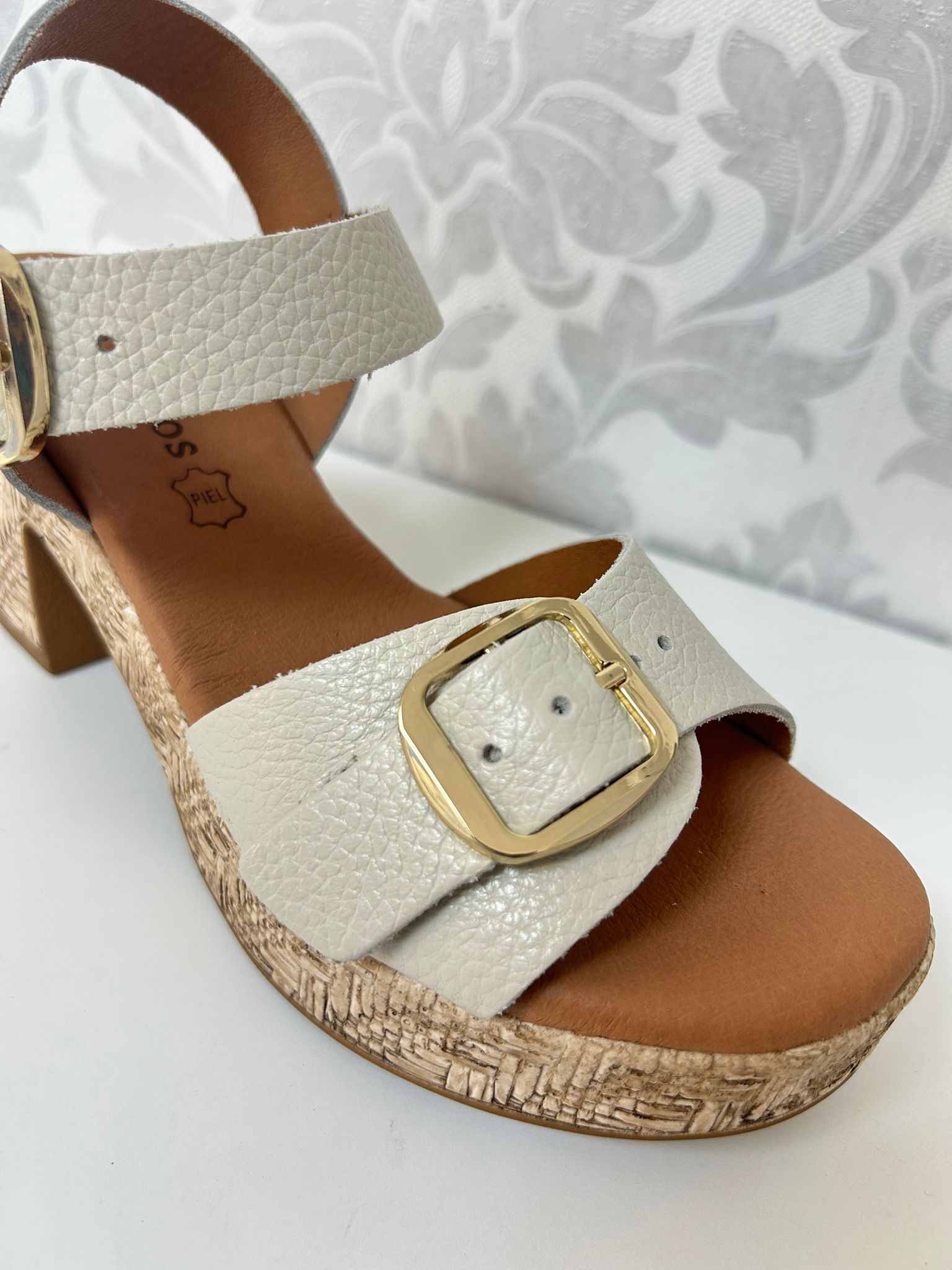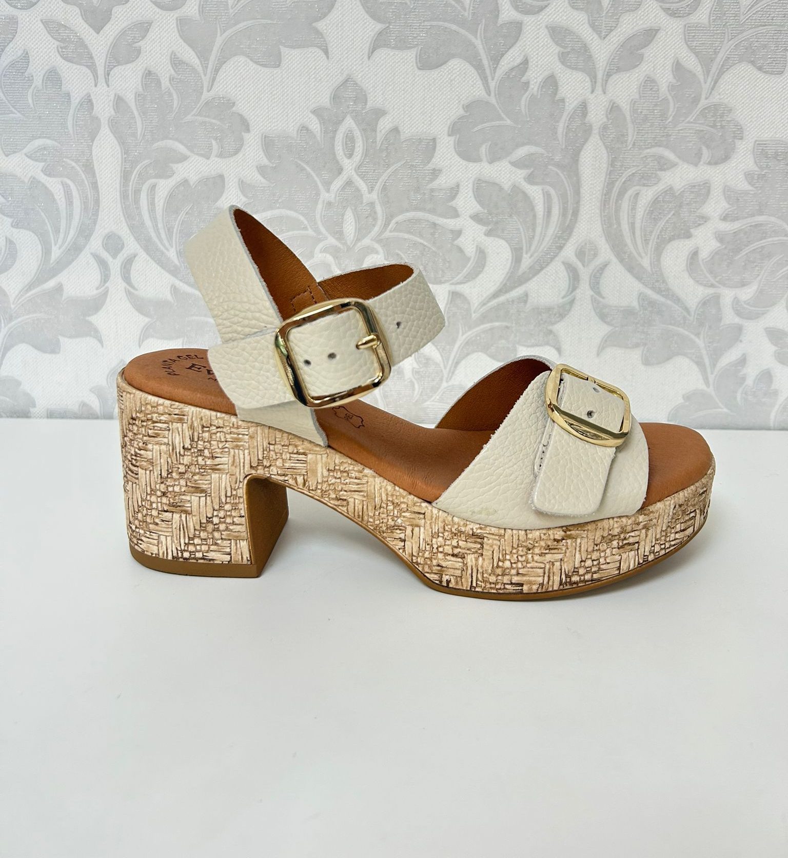 Elegancia natural con altura de confort. Las sandalias Eva Frutos en acabado beige son el equilibrio perfecto entre diseño y bienestar. Fabricadas en piel grabada de alta calidad, su color beige aporta una versatilidad inigualable, combinando con toda la gama de colores estivales. Su tacón ancho de altura media ofrece una estabilidad impecable, mientras que su planta acolchada de gel garantiza una pisada suave durante horas. Un diseño sofisticado que realza la figura sin renunciar a la comodidad.